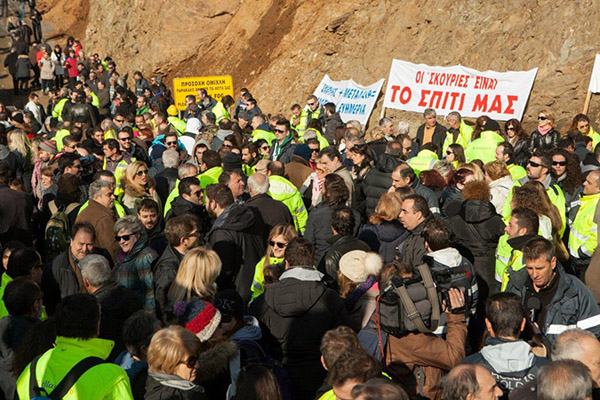 Επεισόδια σημειώνονται στις Σκουριές κατά τη διάρκεια συγκέντρωσης ενάντια στην εξόρυξη χρυσού και αντισυγκέντρωσης από τους μεταλλωρύχους της Eldorado Gold.